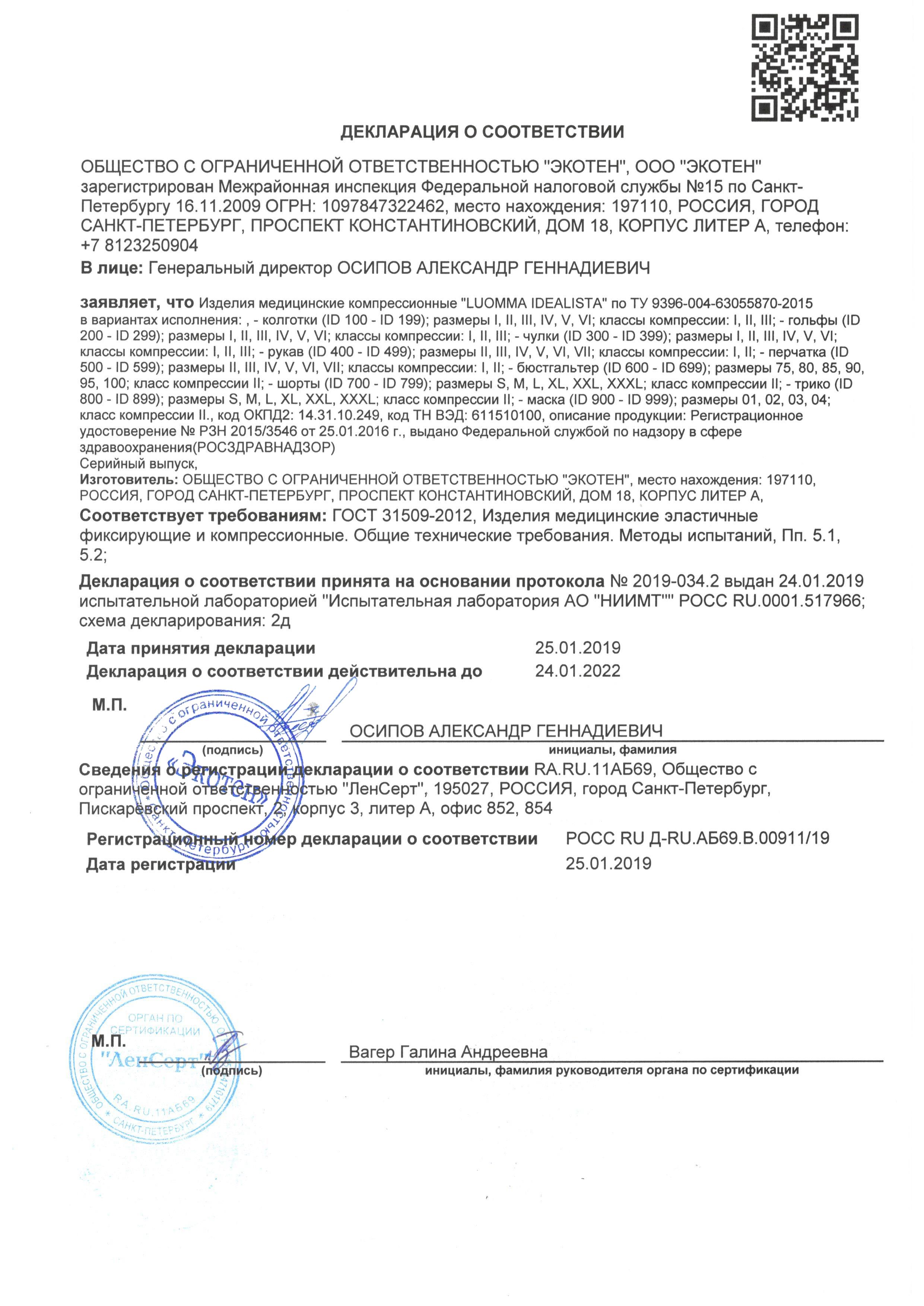 Антиэмболические чулки ID-380 Luomma с резинкой на силиконовой основе, 1КК