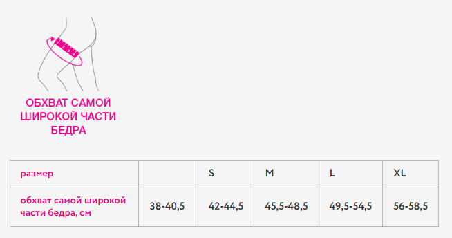 Таблица подбора размера: