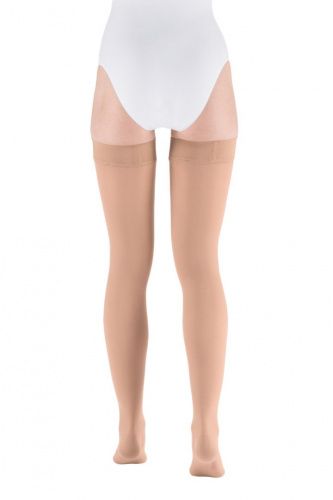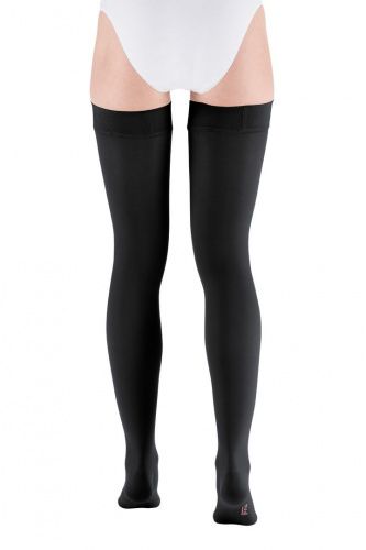 Компрессионные чулки 2-ого класса компрессии mediven plus с открытым носком на широкое бедро и силиконовой резинкой как универсальное решение в лечении заболеваний вен.