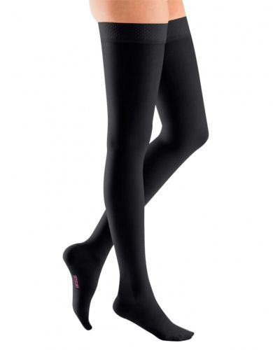 Компрессионные чулки mediven plus 1-ого класса компрессии с резинкой на силиконовой на широкое бедро основе как универсальное решение в лечении заболеваний вен.