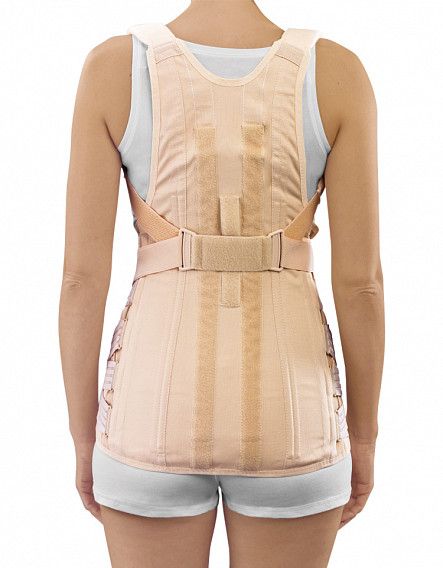 Гибкая регулировка корсета позволяет обеспечить оптимальную посадку в соответствии с анатомическими особенностями фигуры и максимально стабилизировать грудопоясничную область позвоночника.