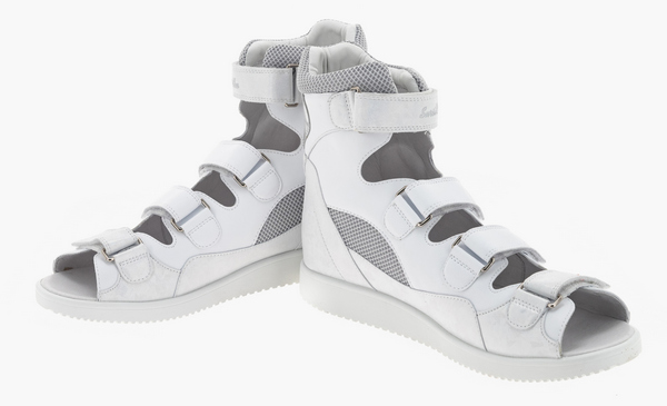 Сандалии изготавливают из нат.кожи. Обеспечивают их жесткой задней частью и берцами, которые отлично поддерживают стопы при их отклонениях. Высокий берец необходим для иммобилизации движения голеностопа. Это дает возможность суставам развиваться правильно или предотвращает развитие деформаций, эффект достигается при регулярном ношении.